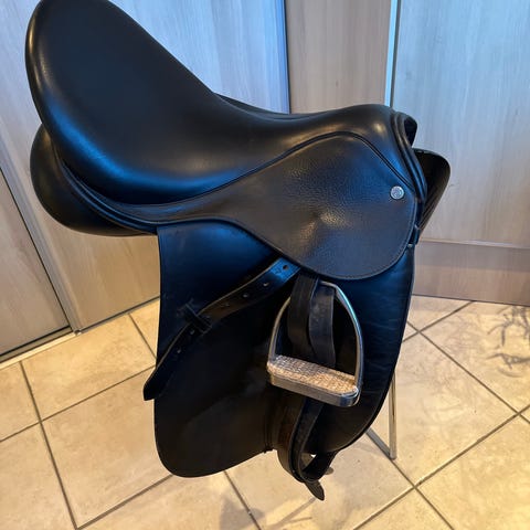 Kiefer Lech II dressursadel i sort læder. Sadel med dybt sæde og lange knæstøtter.