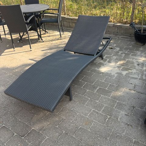 Træ solseng med lameller og justerbart ryglæn. Solsengen er udført i træ med rektangulært stel og liggeflade i smalle, parallelle lameller. Egnet til brug på terrasse, altan eller i have. Kan anvendes med eller uden hynde efter behov.