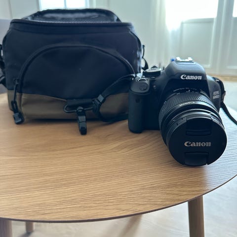 Sort Canon EOS 600D spejlreflekskamera, med EF-S 18-55mm zoomobjektiv. Skønt kamera til både hverdagsfotografering, portrætter eller landskaber. Har selv brugt det primært i arbejdssammenhæng (til at tage gode professionelle portrætter af de ansatte). Hukommelseskort på 64 GB medfølger, så du har rigelig med opbevaringsplads.