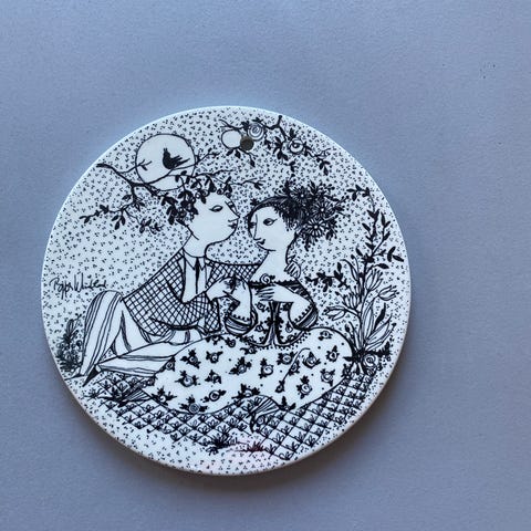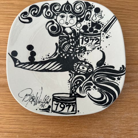 Mynte Keramik vægplakette August Bye-Bye hvid af Jørgen Wiinblad