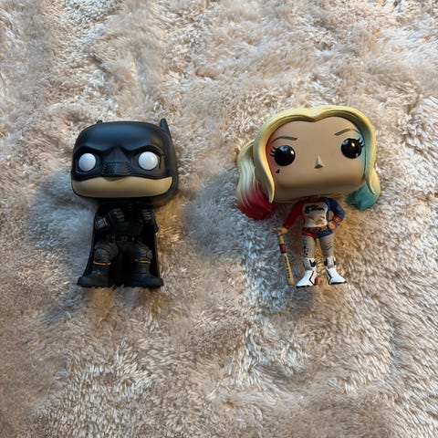 mini-figur af Harley Quinn fra DC Comics' Holiday-serie, kendetegnet ved sin unikke, sukkertoppede tekstur.