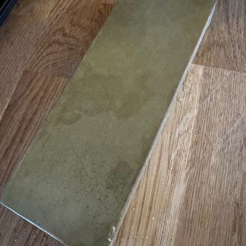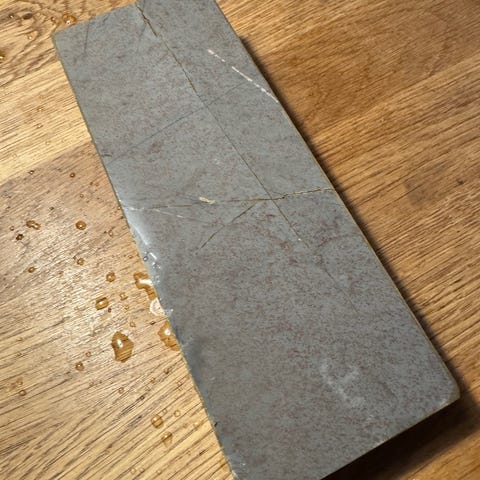 Den frigiver slurry men kan med fordel hjælpes på vej med nagura eller en fin diamantplade.