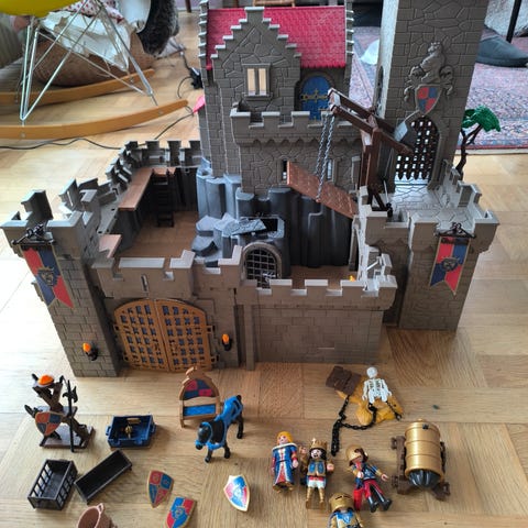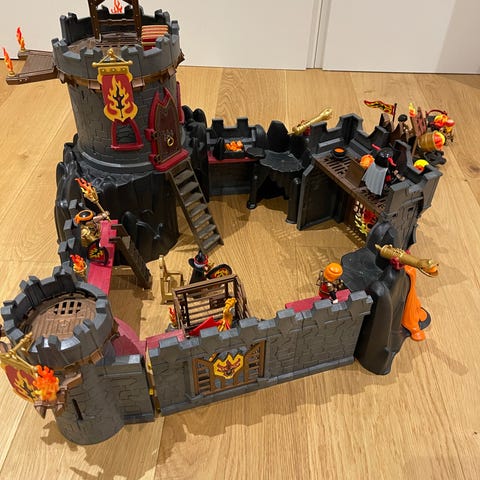 Inkl. en masse tilbehør bl.a. kanon der kan skyde kugle afsted, drage, hest, 7 personer og en masse andet (se fotos)