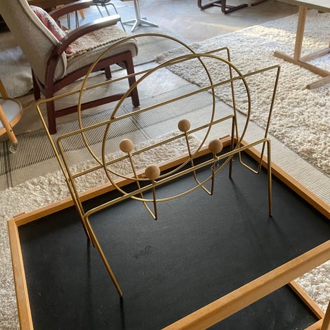 Jeg sælger disse to magasinholdere. De har fire “lommer” hver. Jeg har selv brugt dem til nogle af mine vinylplader. De kan hænges op, hvis man ønsker det. Jeg har bare haft dem stående på gulvet.