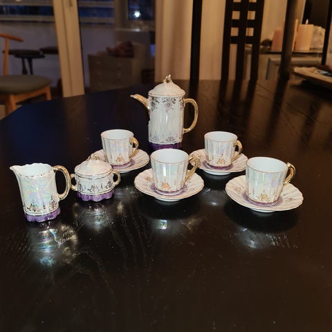 Dukkekaffestel, kaffekanden mangler sit låg