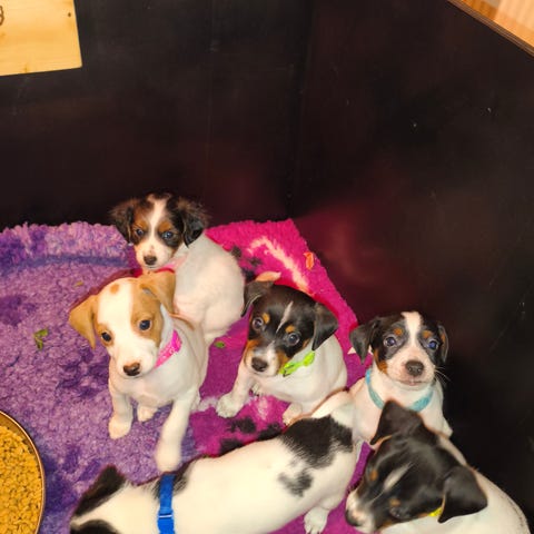 Hvalpene vokser op i trygge, varme og kærlige omgivelser. I deres første uger fyldes dagene med ro, pleje og blide stunder, mens de langsomt vænner sig til verden omkring sig. Som de bliver større, oplever de deres første bilkørsel, møder forskellige mennesker og andre dyr, og bliver socialiseret i rolige og sikre rammer. Hver ny oplevelse er pakket ind i omsorg og tryghed, så deres første skridt ud i livet bliver en god og positiv start.