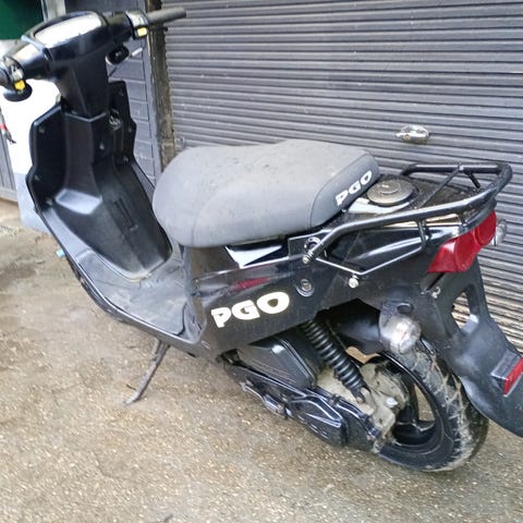 PGO scooter kan starte med en (snaps) men dør så igen, tror det er benzin den er gal med, der er ny nr. plade med til den så omregistreres ved køb,