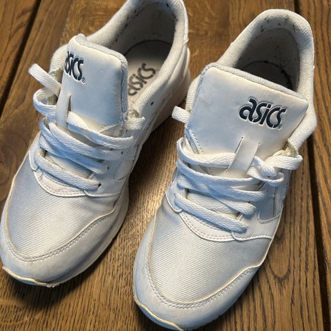 Asics sneakers i størrelse 37. Modellen er i en lys, hvid nuance med grå og blå detaljer. Overdelen er i tekstil og syntetisk materiale med snørelukning. Skoene har en mønstret ydersål i gummi, der giver godt fodfæste. Velegnet som hverdagssko eller til let træning.