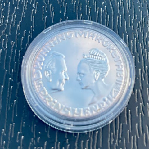 Den Kgl. Mønt 200 kr sølvmønt udgivet i anledning af brylluppet mellem Hans Kongelige Højhed Prins Joachim og Hendes Kongelige Højhed Prinsesse Alexandras bryllup i 1995.