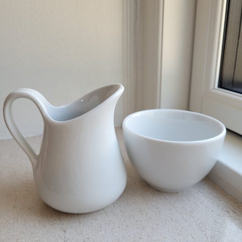 Pillivuyt saucekande med underfad hvid porcelæn
