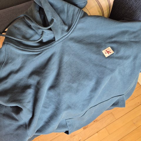 Calvin Klein hættetrøje til damer i størrelse S. Trøjen er grå og fremstillet i bomuld. Modellen har gennemgående lynlås foran, hætte med snøre og kængurulommer. I kanten nederst er der elastisk bånd med Calvin Klein-logo. Velegnet som casual overdel til hverdag eller fritid.