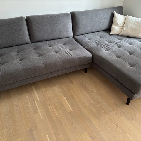 164 cm dybde på chaiselong (målt fra ryglæn)