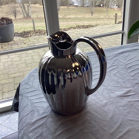 Georg Jensen Ilse kande i blankpoleret rustfrit stål. Kanden har et buet, dråbeformet design med integreret hank og hældetud. Velegnet til servering af kolde eller varme drikke ved borddækning og daglig brug.