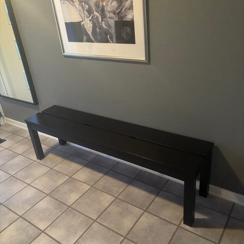 Super fin sort lakeret bænk i fin stand. Der er slået en lille flig af maling på kanten - se billede