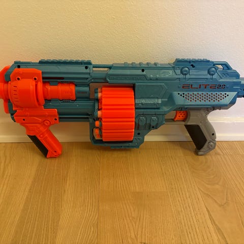 Nerf Elite legetøjsblaster med elektronisk mål og tromlemagasin