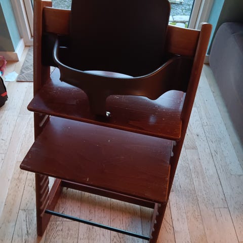 Trip Trap stol I mørkebrunt træ.