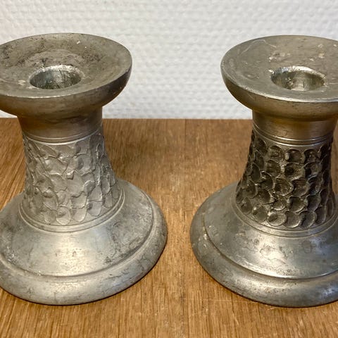 2 stk gamle lysestager i dosco metal. Er klassiske og rene i udtrykket.