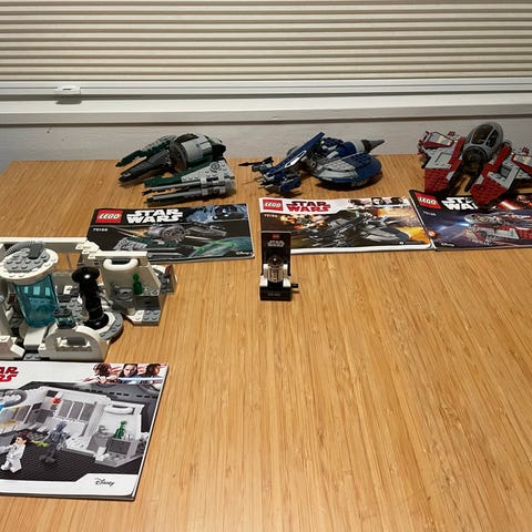 LEGO Star Wars byggesæt med flere forskellige rumskibe og minifigurer. Sættene omfatter blandt andet mindre rumskibe, køretøjer og tilhørende figurer fra Star Wars-universet. Egnede til leg og opbygning af scener fra filmene samt som supplement til andre LEGO Star Wars samlinger.