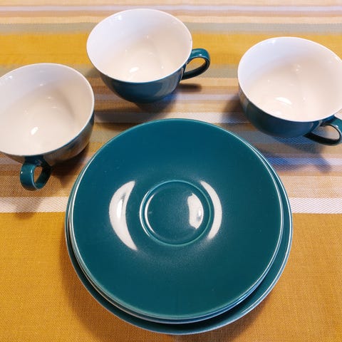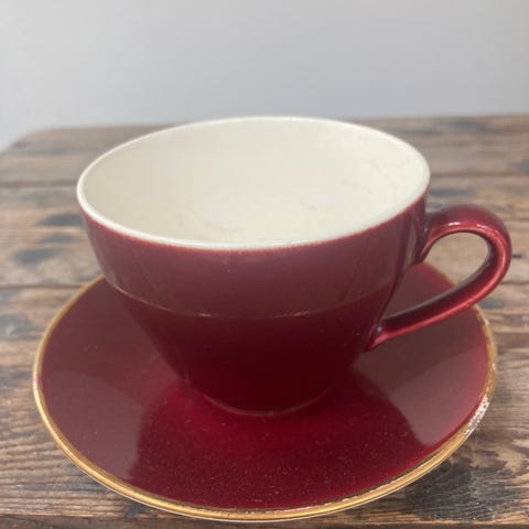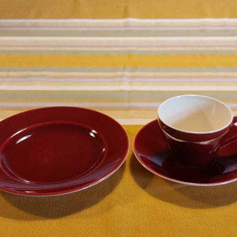 Kop, underkop og kagetallerken. Små brugsspor, ingen afslag, rigtig fin stand