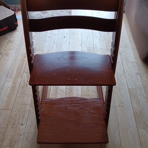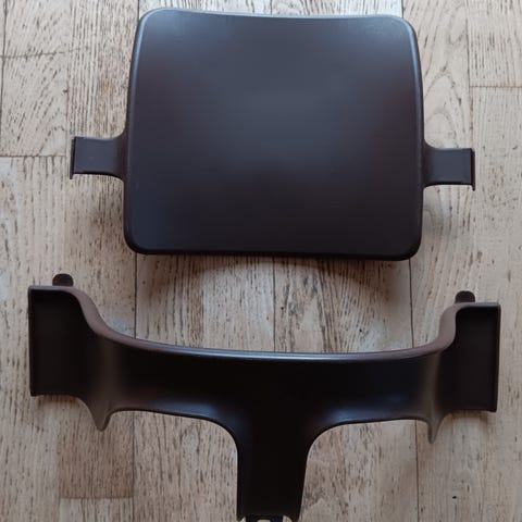 Trip Trap stol i mørkebrunt træ med mørkebrun baby indsats.