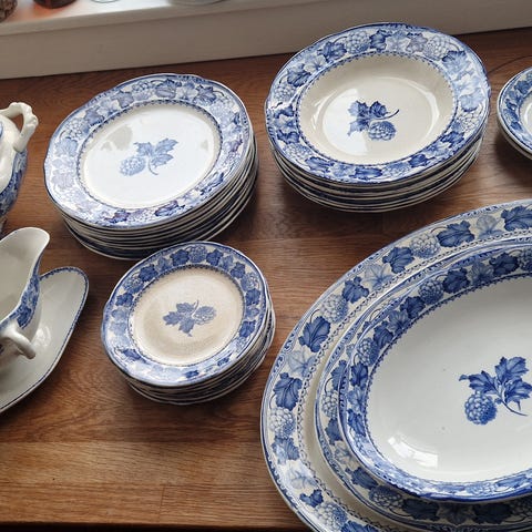 12 dele velholdt tallerkener og skåle fra England mm samlet 250,-