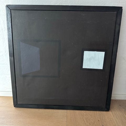 Det første er 87 x 67 og det andet er 52 x 42. Er med de klassiske sorte rammer han benytter på sine malerier.