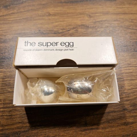 Piet Hein super æg af sølv belagt metal i original æske fra 1960,erne.