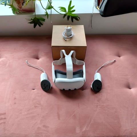Cirka 3 måneders gammel brugt et par gange. 2 års garanti. følger ikke med originale headstrap men har en bobo m3 pro headstrap som er gået lidt i stykker, men virker stadig helt fint. Hvis du ikke gider have den, kan du altid købe en ny🙃 Original oplader aldrig brugt følger også med.