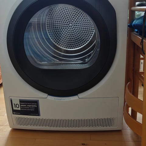 Fin tørretumbler sælges pga flytning ny pris var 5899,- Electrolux kondenstørretumbler i hvid. Tørretumbleren er en kondensmodel, hvor fugten samles i en beholder i stedet for at blive ledt ud gennem en aftræksslange. Frontbetjent model med rund luge og elektronisk betjeningspanel øverst. Velegnet til almindelig husholdningsbrug til tørring af tøj, håndklæder og sengetøj. Flere programmer og indstillinger kan vælges via panelet afhængigt af tekstiltype og ønsket tørhedsgrad.