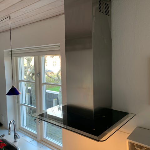 Emhætten er vægmonteret og i rustfri stål. Bredden på emhætten er 60 cm.