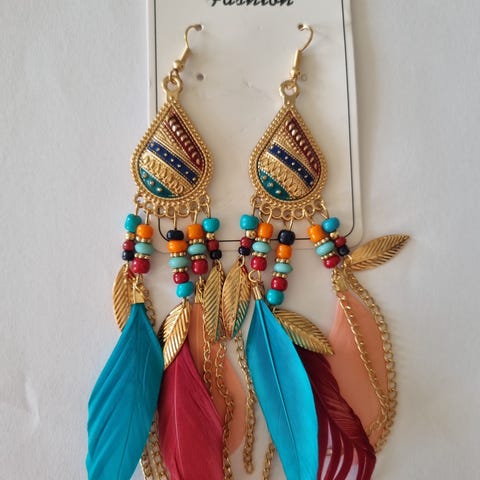 Accessorize øreringe med hvide og beige fjer