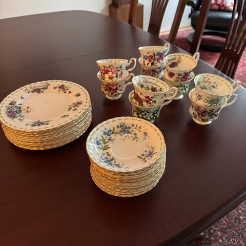 Eksklusivt og klassisk kaffestel fra Royal Albert, England.