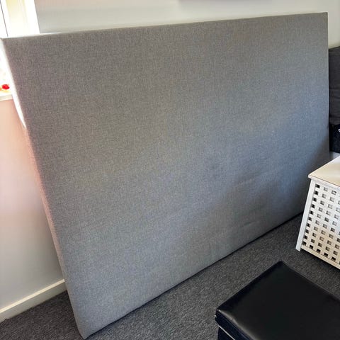Jysk Dreamzone Kulu sengegavl i grå tekstil. Sengegavlen har et polstret, kvadratsyet design med knapper på fronten. Velegnet som ryglæn ved læsning eller afslapning i sengen og som afslutning på sengen mod væggen. Passer typisk til dobbeltseng afhængigt af mål på modellen.