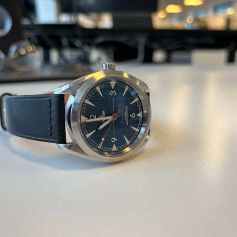Sælger mit super flotte Omega Railmaster med den eftertragtede sorte skive. Det er den netop udgået model som er i helt børstet stål.