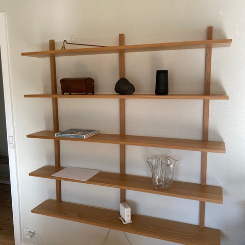 Benene kan vendes så reolen både kan stå ude midt i et rum eller helt op af en væg.