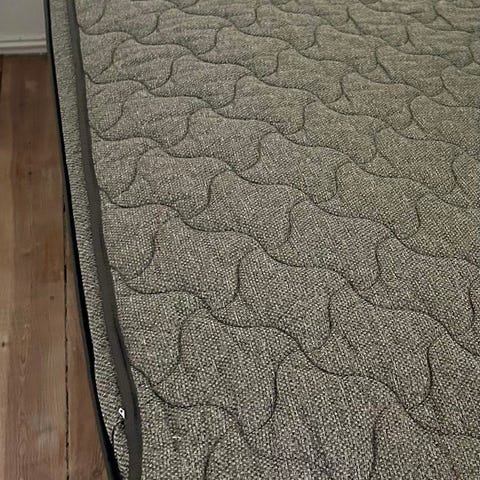 Hilding Family Plus seng i grå tekstil. Sengen består af to nederste madrasser med fælles topmadras. Betrækket er fremstillet i tekstil og er mærket med vaskeanvisninger. Velegnet som dobbeltseng i soveværelse eller gæsteværelse.