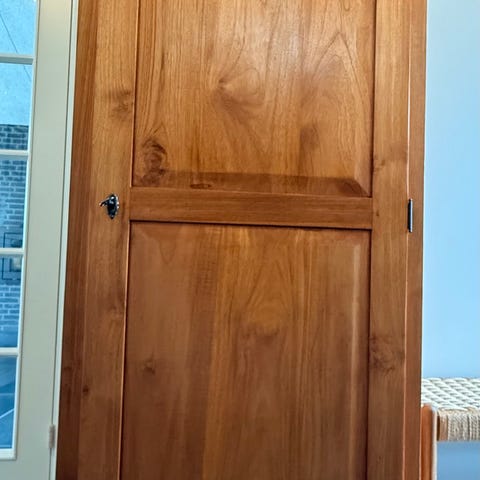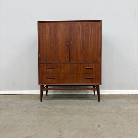Teaktræ skab med 2 skuffer samt i skydelåger