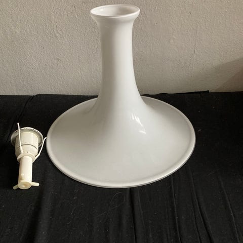 Første sortering og i absolut flot stand uden afslag. Med fatning og ca 60 cm ny ledning med 3-benet lampestikprop til lampeudtag ned drejefatning. Sælges uden pærer.