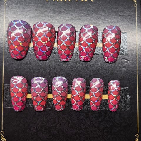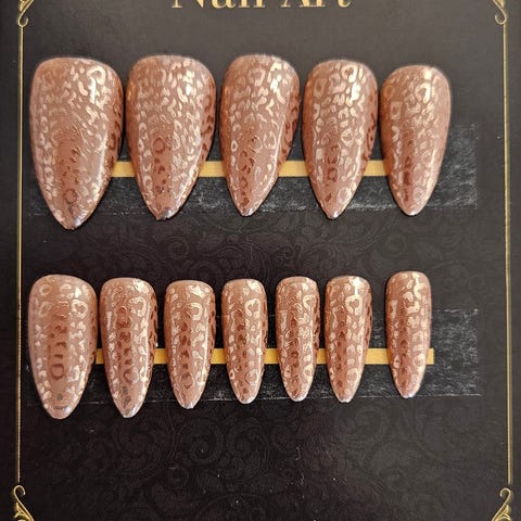 Håndlavet press on negle med negle lim, fil, og neglebånds skubber. pris og nr fremkommer på billedet, slået op flere steder. Har flere annoncer med forskellige negle. Køb af et sæt inden kl 19 sendes samme dag. Priser fra 75 kr. Til 150 kr.