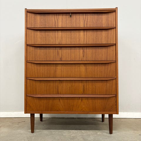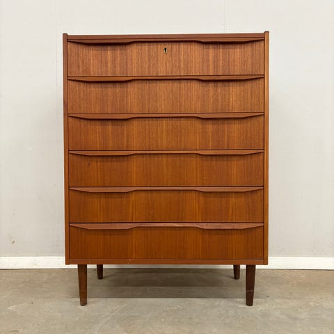 Teaktræ kommode med seks skuffer