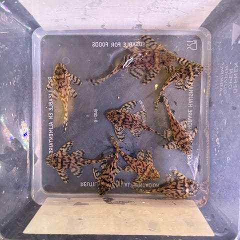 De spiser røde mallepiller- artemia granulatfoder- artemia frostfoder + andet protein foder