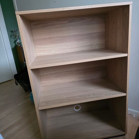 Elvarli reol med bambushylder og tre skuffer