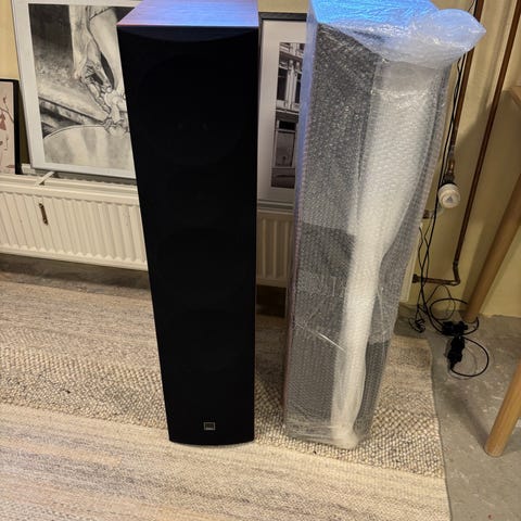 Alle enheder er i god stand og spiller, som de skal – de leverer en fyldig og kraftig lyd med god bund. Kabinetterne har almindelige brugsspor, ikke noget voldsomt, men man kan se, at de er brugte. Se billederne for stand.