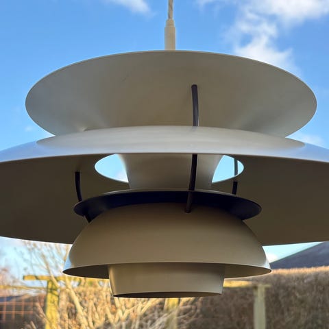 Louis Poulsen PH loftlampe designet af Poul Henningsen. Pendel med flere skærme, der giver et blændfrit og diffust lys nedad og til siderne.