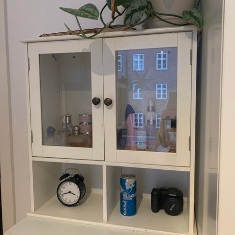 Jeg sælger dette lille vitrineskab i farven hvid
