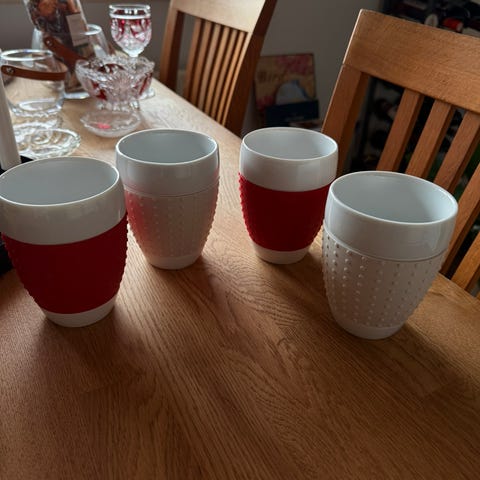 Alle 4 krus/kopper fremstår i flot stand