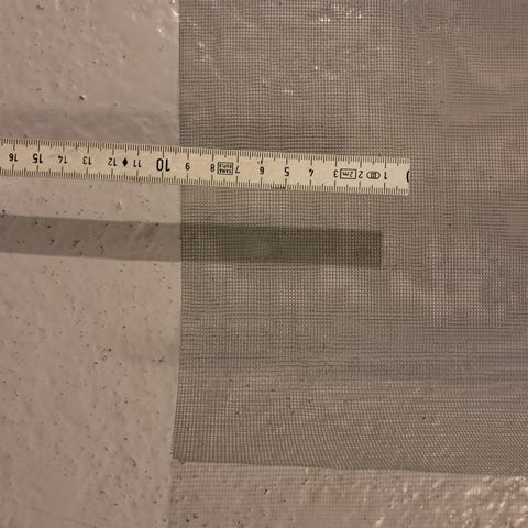Fluenetter er 1,30 m x 1,50 m og kan klippes til, så det passer til vinduet.