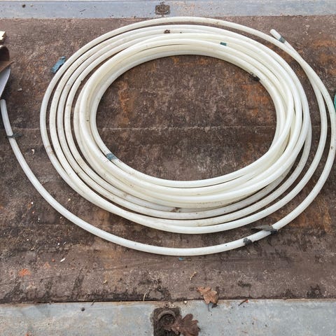 Pexrør i hvid farve, leveret i rulle. Egnet til brug i VVS-installationer, f.eks. vand- eller varmesystemer, hvor der anvendes pexrør. Rullen kan afkortes efter behov afhængigt af installationens længde og udformning.