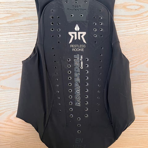 Komperdell beskyttelsesvest i sort og blå. Vesten har polstrede paneler foran og bagpå samt justerbare bånd omkring livet. Lynlås foran. Egnet som kropsbeskyttelse ved fx ridning, ski eller anden sport, hvor der er behov for ekstra ryg- og overkropsbeskyttelse. str. L