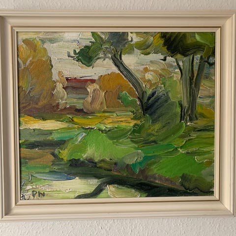 Peter Nicolaisen - Maleri landskab olie på lærred ca. 53x53 cm